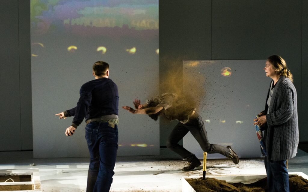 Spektakl inspirowany dramatem Sławomira Mrożka „Emigranci” został stworzony przez grupę białoruskich twórców, którzy dokonując dekonstrukcji klasycznego tekstu zastanawiają się nad perspektywą otwierającą się w stanie bycia „pomiędzy”. Sztukę Mrożka rozsadzają od wewnątrz prawdziwe historie Białorusinów, którzy przeszli drogę od euforii protestów do masowego exodus z własnego kraju i doszli do wniosku, że emigracja jest więzieniem, tylko na wolności. Między emigrantem a uchodźcą przycupnął wygnaniec.Między krajem ojczystym, gdzie czeka na niego więzienie,…