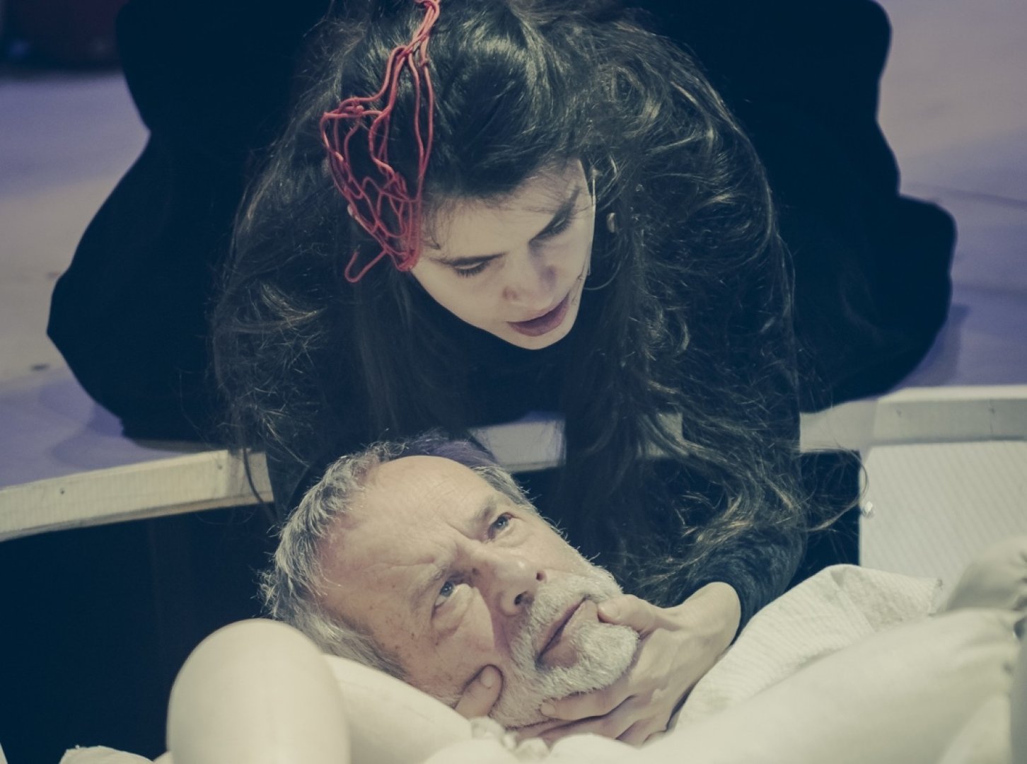 Ja tego tak nie widzę, raczej staraliśmy się ubrać go minimalistycznie w jakiś strzęp, w kostium, który byłby śladem po czymś innym. Ten Poeta to jest ktoś, kto domaga się od nas, byśmy go uwolnili, pomagając mu przejść drogę na drugi brzeg. Przyjęliśmy, że on się znajduje gdzieś indziej, nie tam, gdzie toczy się bezpośrednia akcja Dziadów. Nie ma go wówczas w Polsce ani na Syberii, ale bardzo chciałby tam być ze swoimi rodakami. Stara się więc nam pokazać, jak można być tam, gdzie się nie jest, w jaki sposób można towarzyszyć bliskim ludziom sercem, myślą, modlitwą i miłością. To przypomina obcowanie przez ścianę, choć realnie Poetę od osób, o których opowiada, dzieli znacznie większa odległość. Dla mnie Dziady łączą się z momentem śmierci Mickiewicza w Konstantynopolu. Myślę, że w tym tekście on mówi do nas: „gdy będę po tamtej stronie, to tak się ze mną obchodźcie”.