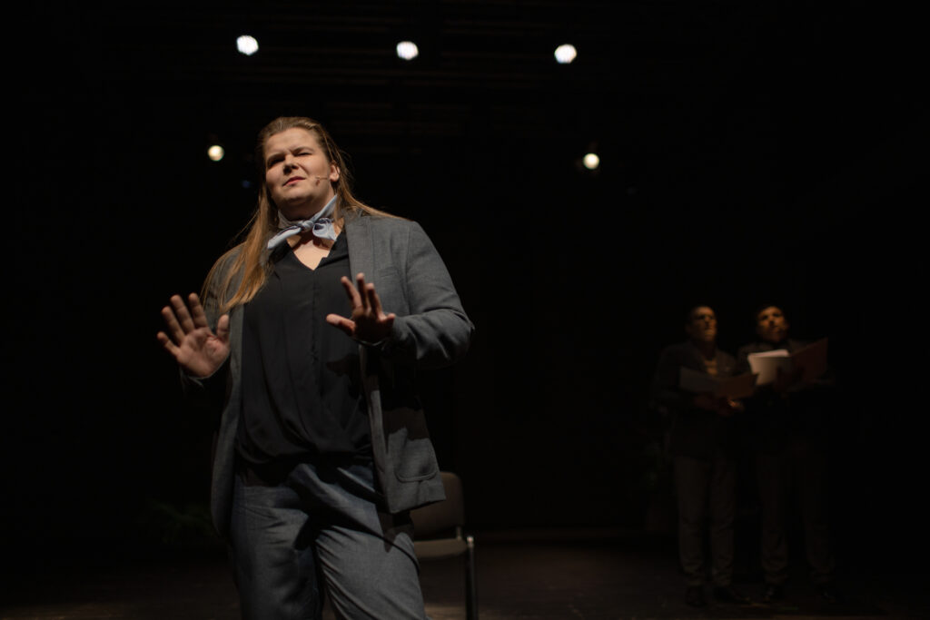 Sztuka z gatunku „teatru absurdu” opowiada o tym, że niezależnie od narodowości i kraju zamieszkania, prawdziwe wartości życia są niezmienne – czas i wolność.