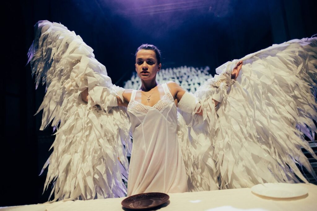 • obsada: Guślarka / Pani Rollison – Zoja Biełachvościk; Dziewica / Duch / Zosia – Valancina Harcujeva; Przyjaciel Więźnia / Bajkow – Alaksandr Zielanko; Józio / Anioł / Sowa – Kryścina Drobyš; Senator / Zły Pan – Aleh Harbuz; Doktor – Andrej Korzan / Aleś Paŭlaŭ; Gustaw / Pelikan / Kruk – Andrej Drobyš; Konrad – Alaksandr Harcujeŭ; Ksiądz Piotr – Eryk Arłoŭ-Šymkus / Pavieł Astravuch;