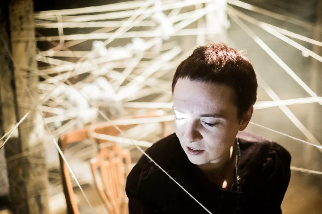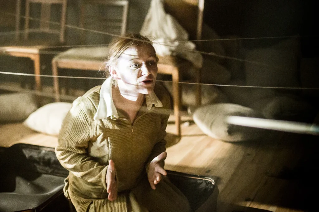 Indywidualne świadectwa wojenne m. in. Ireny Solskiej i Apolonii Starzec składają się na opowieść o Warszawie – jej złożonej, splecionej z wieloma losami historii i wielowątkowej, często trudnej i nie do końca obecnej pamięci. „The HIDEOUT/ KRYJÓWKAto  historia osobista, spektakl, który podróżuje, pracownia pamięci, spotkanie. Aby ujawnić kryjówkę, należy do niej wejść, do wewnątrz, i wtedy znajdujemy się blisko.A z nami plątanina włóczki oraz:Irena Solska – wielka polska aktorka ukrywająca małe żydowskie dziewczyny,Aniela Anyżko – ciemnowłosa jasnowidząca, Apolonia – Zosia, która przykładając język do oszronionej ściany piekarni, by wreszcie na nim, już odmrożonym i spuchniętym poczuć choć przez chwilę smak chleba, jeszcze nie wie, że po latach będzie oprowadzać hollywoodzkiego reżysera po trasie swojej ucieczki z getta.I mały powstaniec, albo granatowy policjant, albo poeta, albo dziad.Zaczynasz ciągnąć za sznurek i wszystko się odsłania: antypomnik, teatrzyk, widoczek. I historie tych, którzy jednak wyszli z szafy.Teraz jest to możliwe, jeszcze tylko przez chwilę, więc…hide-out-coming-out Zosiu, Małgosiu! Stoisz w kącie, pod dywan jest zamiecione, w szafie trup, na strychu straszy, podłoga skrzypi, nie wraca się tą samą drogą – nie wiesz tego. Czas przestać się bać pająków, Ariadno.”