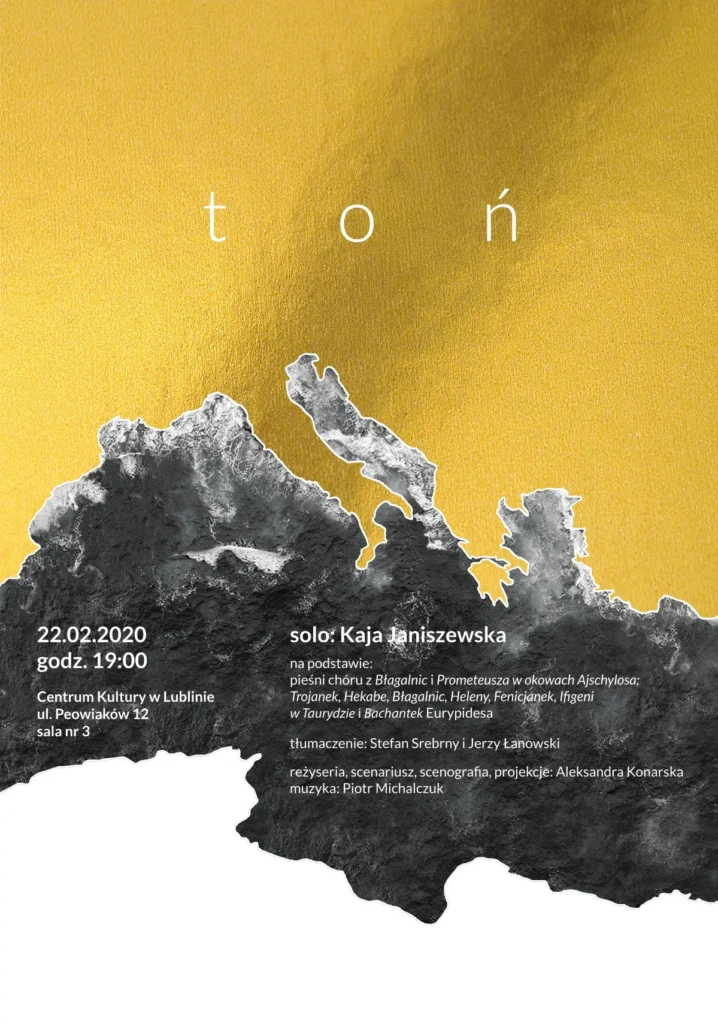 Spektakl powstawał autorską metodą połączenia technik tańca butoh subbody resonance ze szczególnym nastawieniem na rezonans z przedmiotem i z tekstem antycznym. Badałyśmy jak wypowiadane słowa wpływają na rozrezonowane ciało tancerki i jakie pozostawiają w nim ślady, a jednocześnie jakie głosy mogą wydobyć się z ekstremalnych stanów tańczącego ciała. Pozbawione fabuły, konkretnych postaci czy sytuacji teksty chórów antycznych pozwoliły nam zadać sobie pytanie, co znaczy tańczyć tekst?