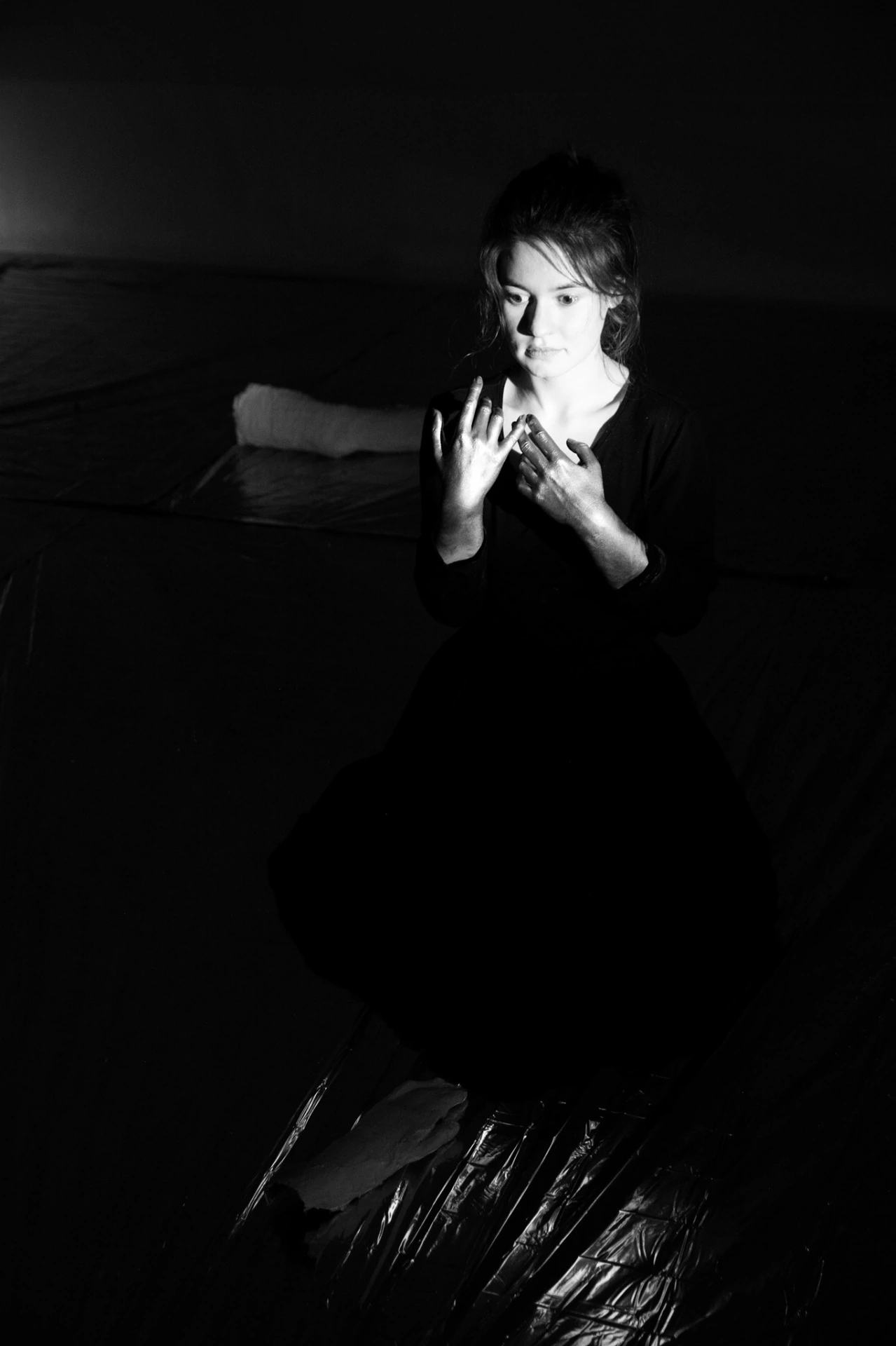 Spektakl powstawał autorską metodą połączenia technik tańca butoh subbody resonance ze szczególnym nastawieniem na rezonans z przedmiotem i z tekstem antycznym. Badałyśmy jak wypowiadane słowa wpływają na rozrezonowane ciało tancerki i jakie pozostawiają w nim ślady, a jednocześnie jakie głosy mogą wydobyć się z ekstremalnych stanów tańczącego ciała. Pozbawione fabuły, konkretnych postaci czy sytuacji teksty chórów antycznych pozwoliły nam zadać sobie pytanie, co znaczy tańczyć tekst?