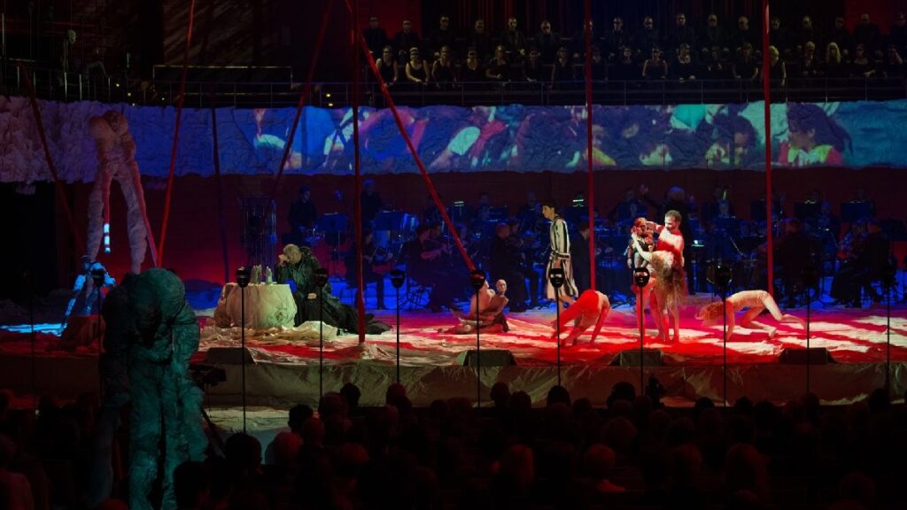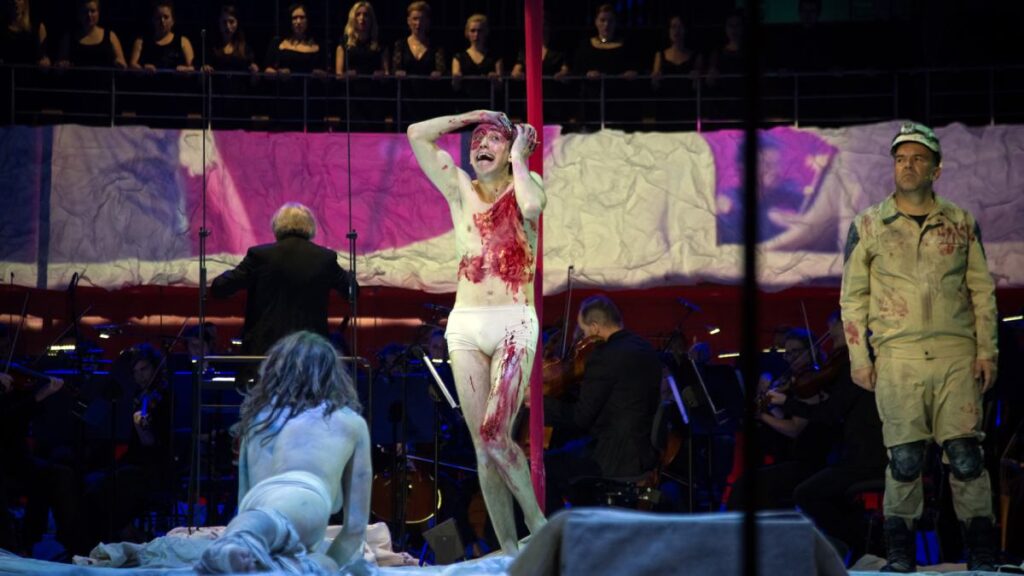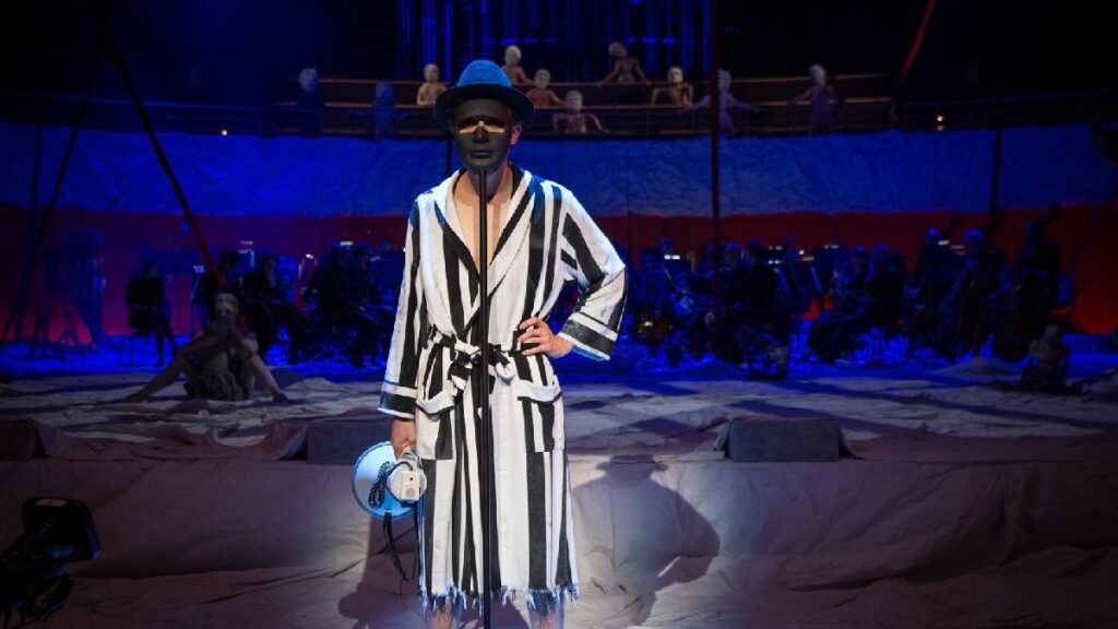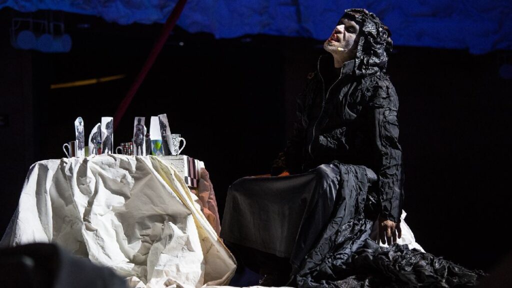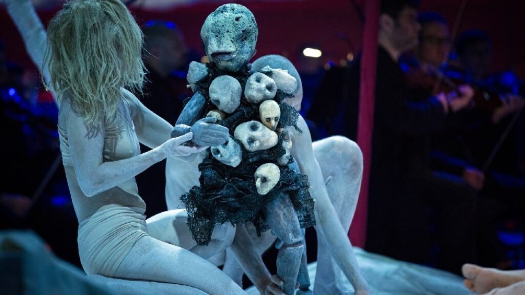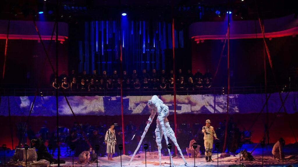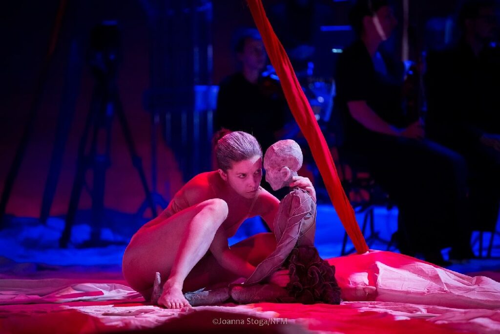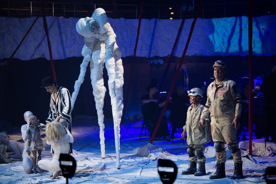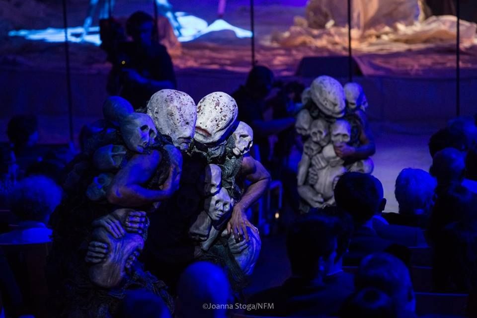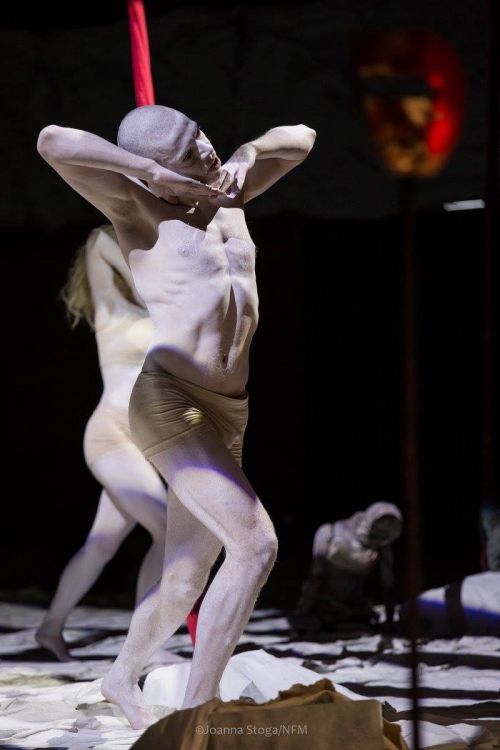 Zadaliśmy sobie pytanie w ciemności własnej, osobistej, dzisiejszej – jakie widma mogłyby się nam ukazać. I przyszły do nas ofiary wojny, tej ostatniej w Syrii, ale i tych wcześniejszych, równie bestialskich i bezsensownych. Dlatego śpiewności moniuszkowskiej frazy przeciwstawiamy ostrość rozwibrowanego ludzkiego organizmu. W ekspresji ruchu, w post-apokaliptycznej estetyce, w ofierze, jaką na scenie aktor i tancerz składają z ciała – w nich poszukujemy kontrapunktu i dopełnienia. I stawiamy pytanie: czy jeszcze potrafimy uczestniczyć w obrzędzie, czy jesteśmy już tylko grupą zamaskowanych obserwatorów. Czy gotowi jesteśmy usłyszeć głosy naszych zmarłych?