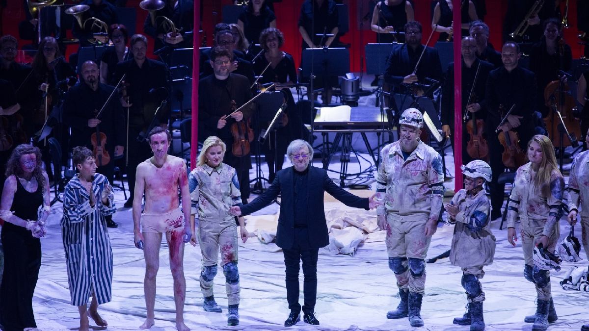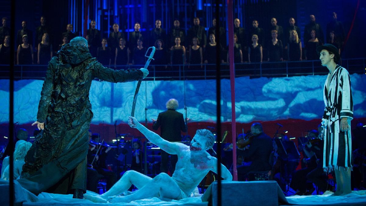 Zadaliśmy sobie pytanie w ciemności własnej, osobistej, dzisiejszej – jakie widma mogłyby się nam ukazać. I przyszły do nas ofiary wojny, tej ostatniej w Syrii, ale i tych wcześniejszych, równie bestialskich i bezsensownych. Dlatego śpiewności moniuszkowskiej frazy przeciwstawiamy ostrość rozwibrowanego ludzkiego organizmu. W ekspresji ruchu, w post-apokaliptycznej estetyce, w ofierze, jaką na scenie aktor i tancerz składają z ciała – w nich poszukujemy kontrapunktu i dopełnienia. I stawiamy pytanie: czy jeszcze potrafimy uczestniczyć w obrzędzie, czy jesteśmy już tylko grupą zamaskowanych obserwatorów. Czy gotowi jesteśmy usłyszeć głosy naszych zmarłych?